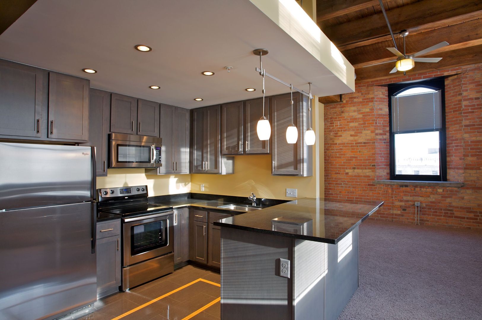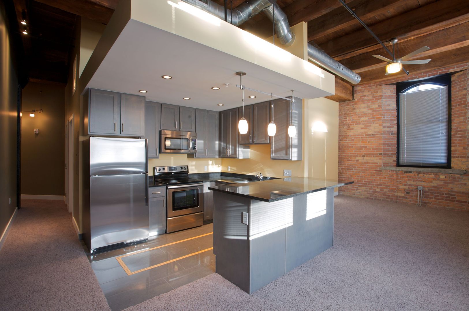 Standart Lofts showcase a flawless blend of historic charm with contemporary sophistication. Our lofts feature unique, open floor plans, modern-day amenities, and cherished style of a bygone era. History is preserved in elements of exposed brick, arched windows, wood beams, tall ceilings, and exposed ductwork, wonderfully mingled with modern comforts including central heat/air, stainless steel appliances, granite countertops, polished porcelain tile, maple cabinets, in-unit washer and dryer, ample closet space, superb natural light, and panoramic city views. Standart Lofts is nestled in the heart of the Historic Warehouse District in downtown Toledo within walking distance of retail, dining, parks and recreation, major businesses and employers, medical facilities, and entertainment venues including Fifth Third Field, Hensville, the Maumee River, Middle Grounds Metropark, Huntington Center, Promenade Park, Toledo’s Farmers Market on Erie Street, and Seagate Convention Center. Our location just off I-75 and the Anthony Wayne Trail makes for a convenient commute to the University of Toledo, the Toledo Zoo and Hollywood Casino in Rossford, and nearby West Toledo, Perrysburg, Maumee, and Oregon.