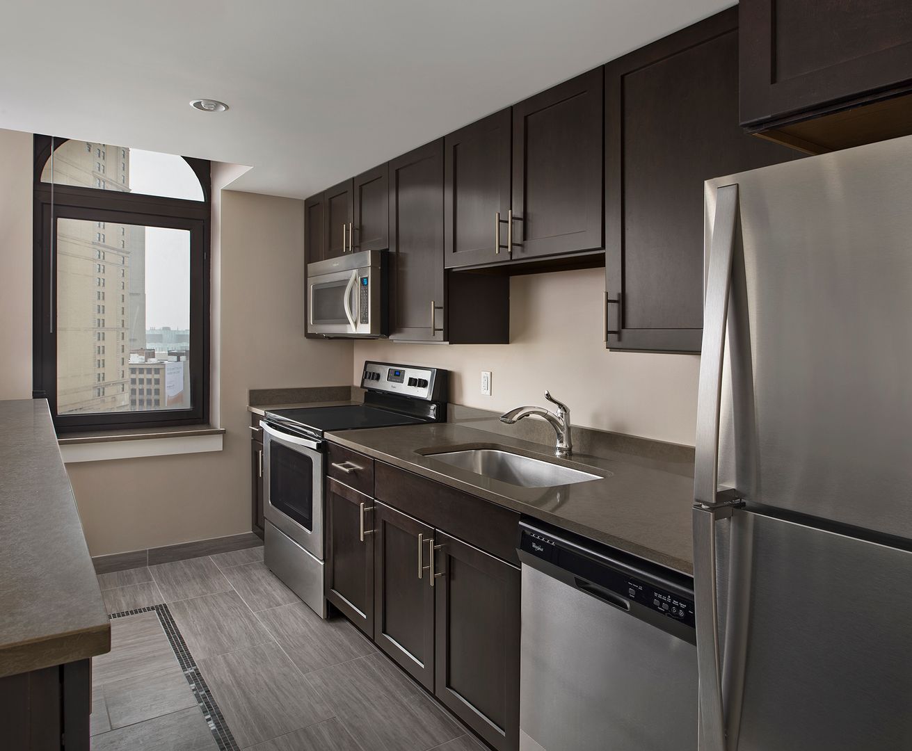 The Detroit Savings Bank offers elegance and style in unique spaces through a blend of historic charm and modern amenities in an exceptional location. Centrally located in the heart of downtown Detroit within walking distance to an array of shopping, dining, and entertainment venues, parks and recreation, public transit, Fortune 500 companies, and institutes of higher learning. Homes feature open floorplans with modern elegance and attention to detail throughout plus the comforts of central heat/air, large windows offering superb natural light and magnificent panoramic views of the city, fully equipped kitchens with stainless steel appliances and quartz countertops, and in-unit washer and dryer. Detroit Savings Bank is the perfect retreat from your demanding lifestyle. An extraordinary living experience awaits you!